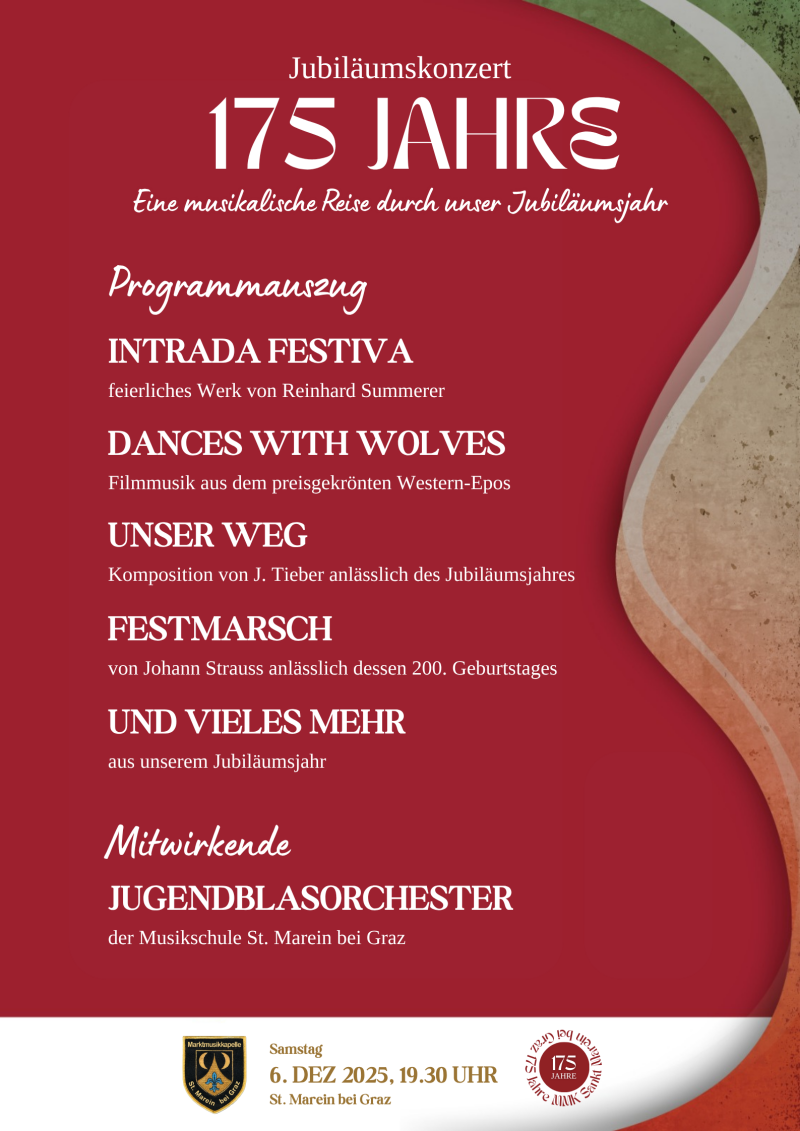 Wir laden euch herzlich ein, mit uns auf eine musikalische Reise durch unser Jubiläumsjahr zu gehen. Freut euch auf ein abwechslungsreiches Programm – feierlich, beschwingt, emotional und voller Klangfarben, die unser Jahr geprägt haben.
